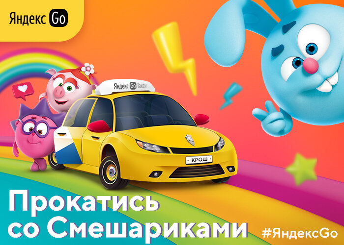 С октября 2020 г. на дорогах Москвы, Санкт-Петербурга, Казани, Красноярска и Ростова-на-Дону можно увидеть автомобили «Детского тарифа» Яндекс Go с яркими героями сериала «Смешарики» на бортах. В проекте участвуют 800 автомобилей сервиса, брендированные изображениями популярных героев мультфильма – Кроша, Нюши и Ёжика.