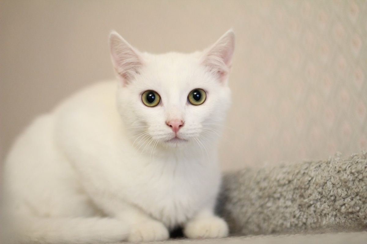 Маленькая белоснежная красавица с глазками цвета янтаря ищет дом.