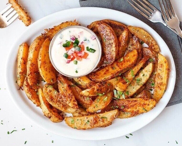 5. Когда картофель будет готов, выньте из духовки и посыпьте свежей нарезанной петрушкой. Подайте с любимым соусом.