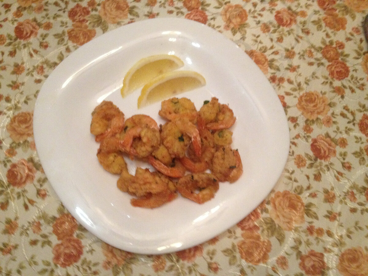 - Нагрейте масло в кастрюле с толстым дном. Обжарьте креветки во фритюре, достаточно 1-2 минут в горячем масле до непрозрачности. Уберите лишнее масло, поместите креветки на кухонную бумагу. Сразу подавайте с нарезанным лимоном.