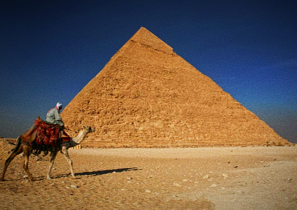 Пирамида Хеопса, 2-го фараона 4-й династии, построенная около 2550 г. до н. э. Для строительства было использовано почти два с половиной миллиона каменных блоков, каждый весил в среднем 2,3 тонны. Это на несколько метров выше пирамиды Хефрена.