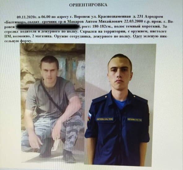 ЧП произошло около 5 часов утра на авиабазе "Балтимор" в Воронеже. 20-летний срочник Антон Макаров сначала зарубил топором одного из своих сослуживцев прямо в казарме, пока тот спал. Затем добрался до комнаты отдыха, напал там на дежурного, отобрал у него пистолет и застрелил – его самого и водителя