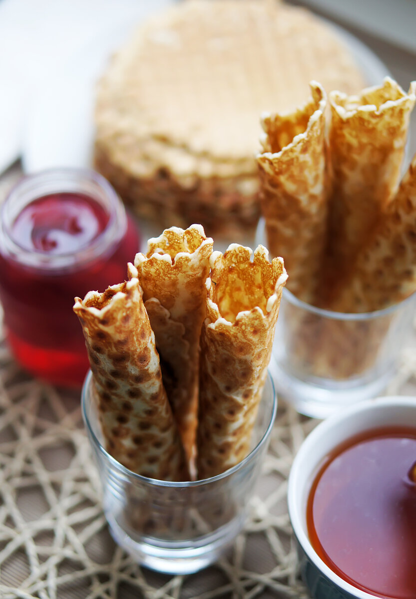 Бабушка готовила их на старенькой советской вафельнице, и я всегда ждала какого-нибудь праздника или чей-то день рождения, с огромной радостью, ведь бабушка не готовила трубочки в обычные будни. Я выросла, рецепт потерялся. Не так давно я отыскала бабушкину старую вафельницу, о, чудо, она работает! И рецепт вспомнился) Делюсь с вами: Яйца - 5 шт. Масло сливочное - 200 г Сахар - 120 г Мука - 200 г Крахмал - 1 ч.л. -2 ст.л. Ванилин/ваниль Приготовление: Масло растопить.