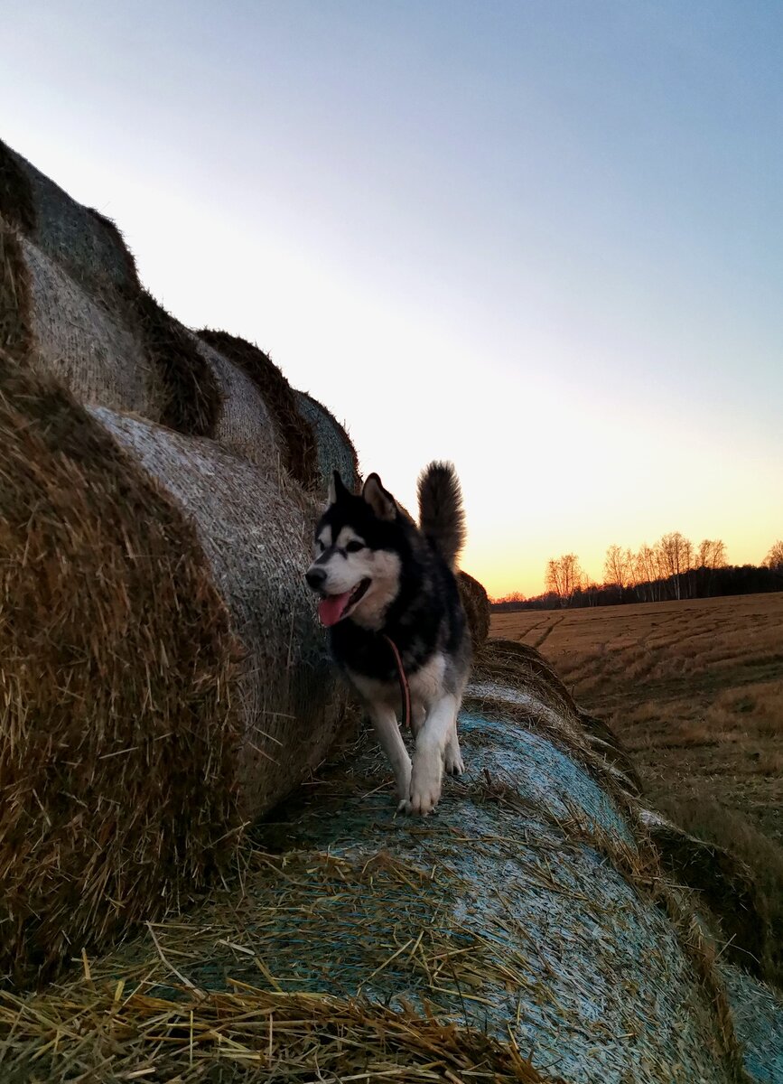 Зато какой стимул для свершений Квас давал Пирату! Кобель хаски на сложенные в полях рулоны сена не запрыгивал, но стоило оказаться там Квасу, как Пират тоже буквально взлетел наверх. Если Квас скрывался за рулоном сена, то окружающий мир моментально переставал существовать для Пирата, а хаски концентрировался только на одном – ожидании, откуда же и когда появится Квас. За всем этим было очень забавно наблюдать!