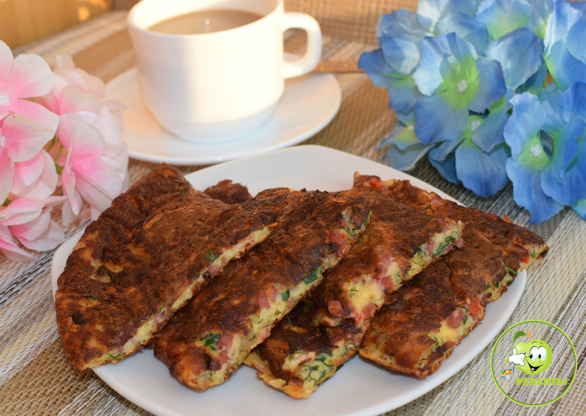 Сколько раз готовила кефирные лепешки по разным рецептам, они всегда получаются вкусными. И этот рецепт не исключение, ведь в тесто добавляются и колбаса, и сыр с помидорами. Этот завтрак "улетел" у меня за пару секунд, так быстро, мне кажется, я еще никогда не завтракала. В исходном рецепте выпекается несколько небольших тонких лепешек. Я же попробовала приготовить одну лепешку, но для этого нужно использовать сковороду побольше.