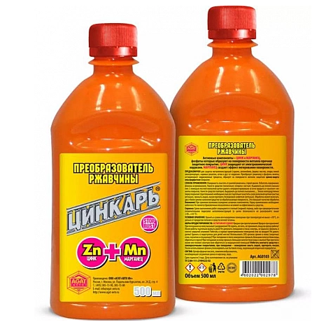 Преобразователь ржавчины от российского производителя, идеально подходящий к любой работе. Он может использоваться для ликвидации коррозии на любой металлической поверхности, в том числе и авто. Средство на рынке уже 25 лет, за это время оно проявило себя как надежное и простое. Agat-Avto «Цинкарь» способен не только превратить ржавчину в грунт, но и создать особый слой, предотвращающий разрушение самой структуры металла. Смесь заслуженно считается одной из самых качественных, а если сравнивать с аналогичными, то становится видно, что она еще и дешево стоит. В ее составе особо агрессивные компоненты, проникающие в самую глубь ржавчины и разрушающие ее структуру. Правда, они токсичны, поэтому при работе следует быть очень осторожным и не допускать контакта с кожей.