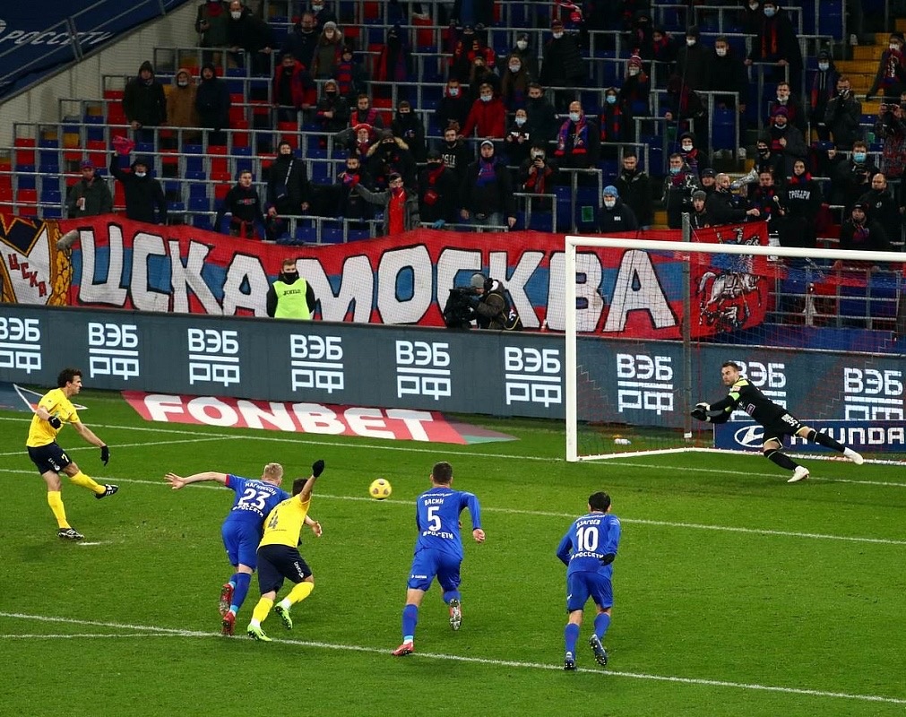 Голкипер в середине второго тайма справился с ударом Романа Еременко.