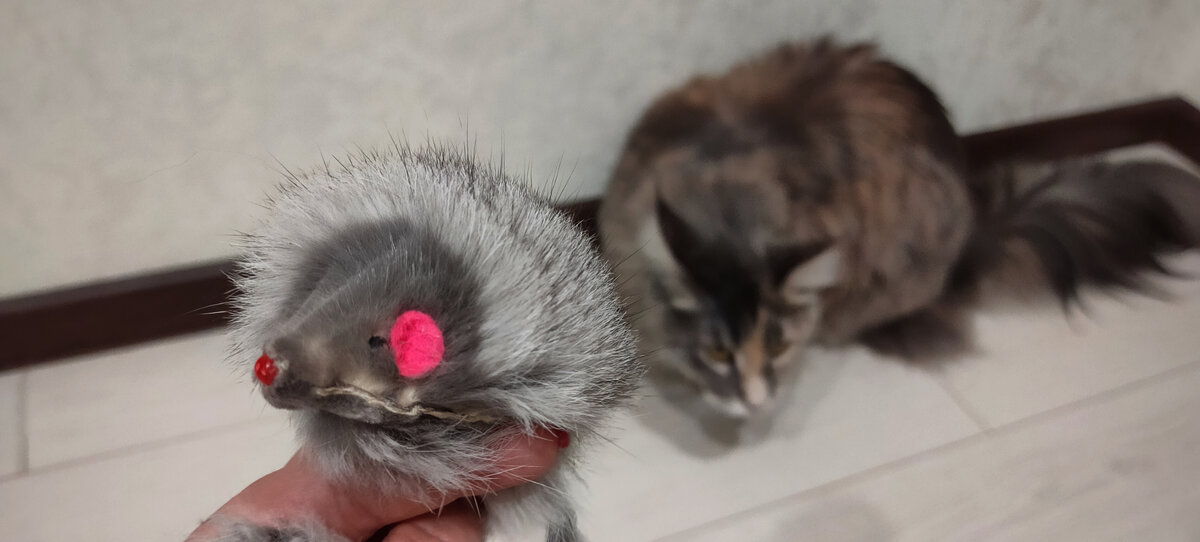 Оказалось, это реакция на новую игрушку. Обычная меховая мышка, немного гремит, - ничего