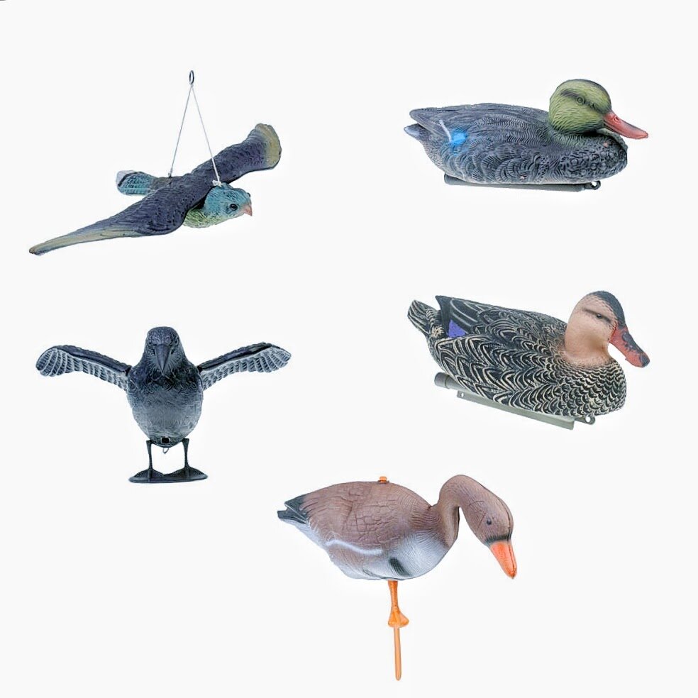 Механические утки. Из плюсов — обстановка на водоеме становится максимально приближенной к реальности, из минусов — высокая стоимость чучел. В продаже встречаются изделия с подвижными крыльями, способные медленно плавать по водоему.