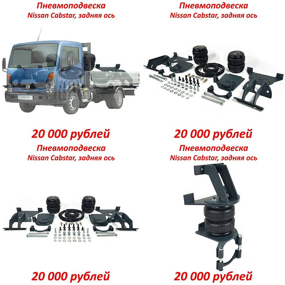 Пневмоподвеска на заднюю ось Nissan Cabstar грузоподъёмностью до 1600 кг устанавливается в дополнение к штатным рессорам и снижает на них нагрузку.