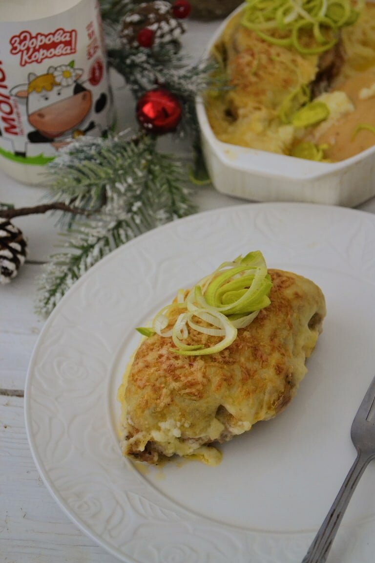 Филе с грудинкой и шампиньонами в соусе Бешамель-его мы с вами уже готовили на лазанью, так что не возникнет трудностей.
