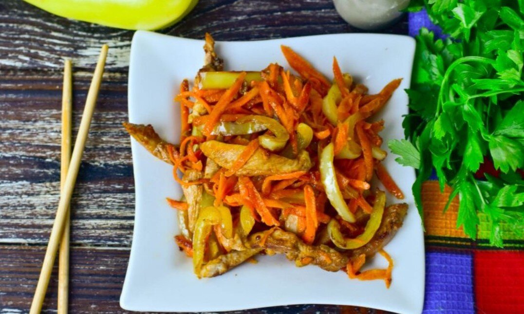 В одной из поездок на дальний восток я подсмотрела просто замечательнейший рецепт салата по-китайски, который теперь занимает прочное место в нашем семейном рационе!