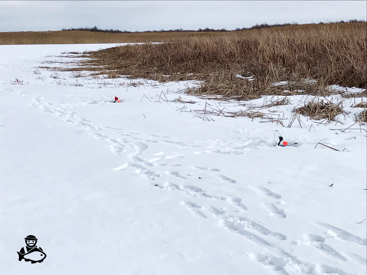 Я всегда выставляю жерлицы вдоль камыша и ухожу ловить на удочку в перспективное место. Зачастую жерлицы находятся далеко от меня и приходится постоянно бегать проверять их. Тем более если произошла сработка, а флажок упал, то узнаешь об этом только когда будешь делать обход.
