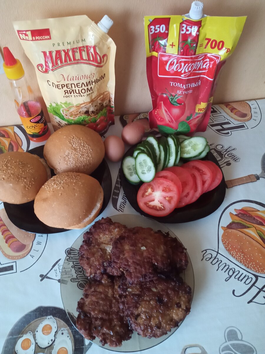 Верхнею часть булочки смазать немного майонезом и кетчупом накрыть бургер.