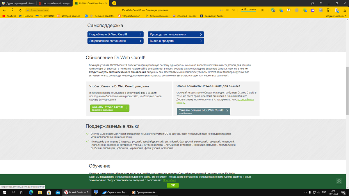 Лечащая утилита Dr.Web CureIt! вылечит инфицированную систему однократно, но она не является постоянным средством для защиты компьютера от вирусов.