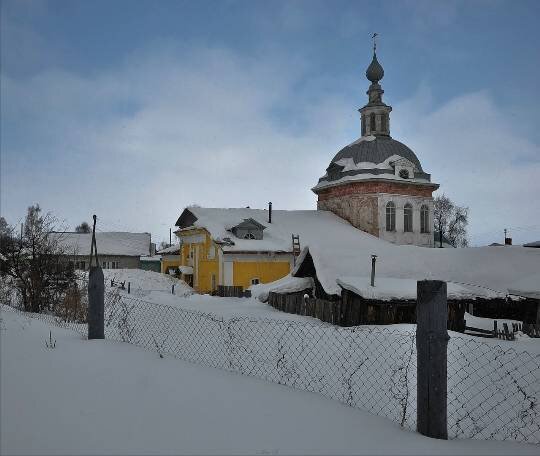 Для церкви характерен двухъярусный высокий четверик, при этом в верхнем ярусе имеются срезанные углы, что отражает традиционно объемную композицию, которая представлен как восьмерик на четверике. Венчание основного объема осуществлено барочным восьмигранным куполом со световым двухъярусным барабаном и люкарнами. Можно заметить, что довольно сильно выступает суженная апсида, оснащенная прямыми боковыми стенами, а также несколько скругленной с восточной стороны изогнутой кровлей. Имеющиеся у придельных апсид полукружия выступают со всех сторон четверика, включая даже западные углы четверика. Трапезная комната имеет двускатную кровлю, на которой выставлены небольшого размера главки.
