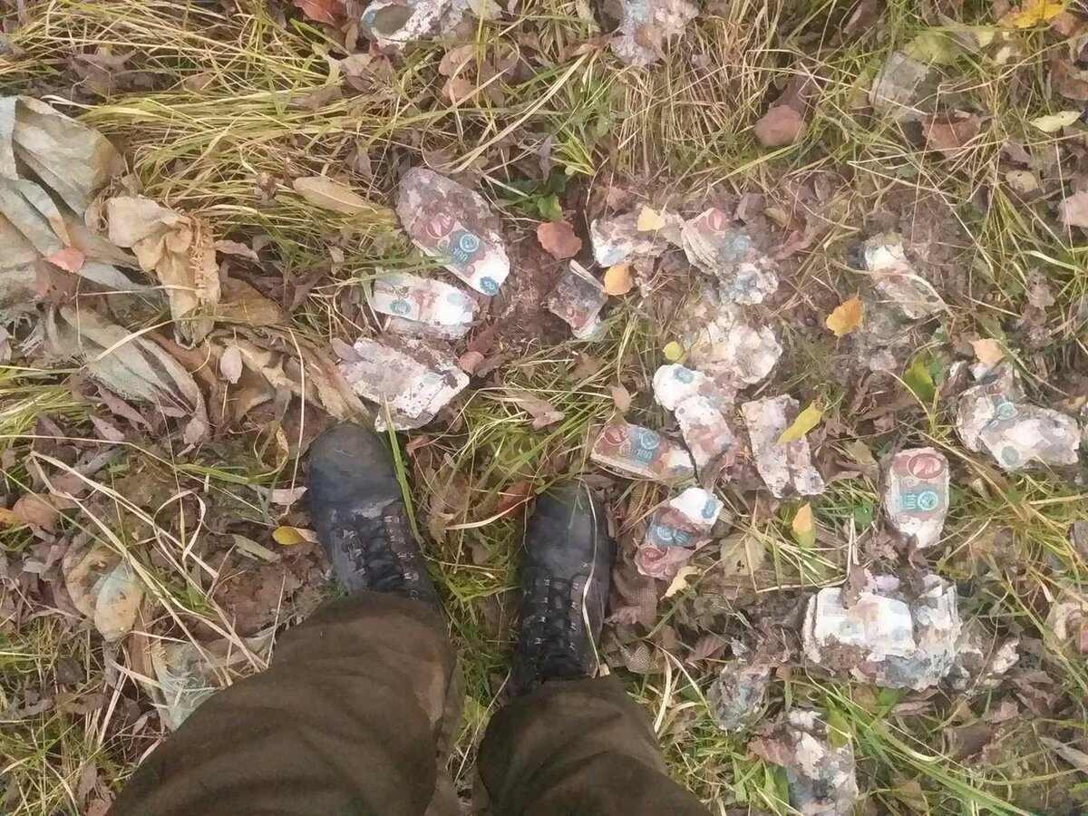 Здравствуйте. Россия огромная удивительная страна, в которой деньги могут лежать прямо у вас под ногами, с одной лишь оговоркой, это деньги советские. В лесах Владимирской и Ивановских областей до сих пор существуют такие подобные затопленные шахты, которые хранят тонны советских денег, которые были сброшены сюда в 90-е годы. Так до сих пор они покоятся тут, но относительно не давно шахты были вскрыты на предмет поиска хорошего металла. И тогда удивлению не было придела, когда под многотонной крышкой, «металлисты» увидели мешки с советскими деньгами. Этим летом мы с другом первый раз были там и я своими глазами увидел, то что считал откровенным фейком, но это была правда. Шахта есть и деньги в ней тоже есть. Но тогда мы только взяли на память несколько купюр, которые были уже на поверхности. По пути домой мы решили приехать сюда снова с «кошкой» и уже попробовать самим выловить деньги из шахты. И у нас это получилось. На фото лишь малая часть, которую удалось найти, материал о «денеж
