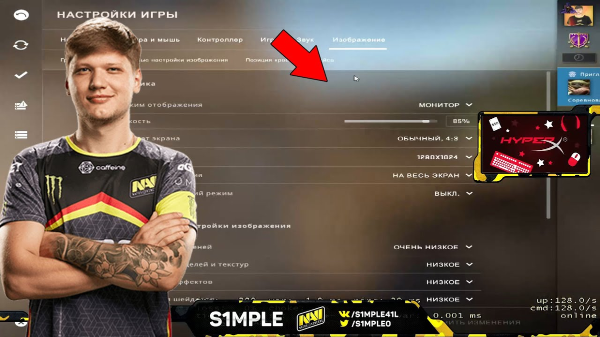 Разрешение: 1280x960 (4:3 растянутое) Герцовка монитора: 240 HАСТРОЙКИ ВИДЕО