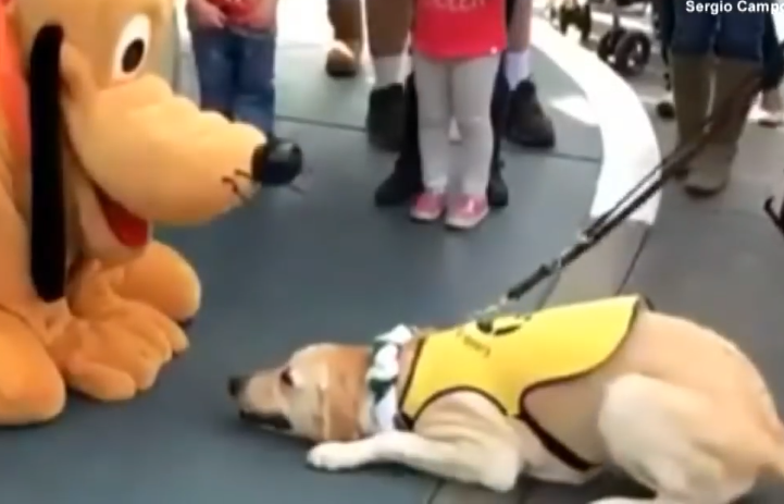 Лабрадор встретил в Диснейленде сказочного персонажа, сразу влюбился