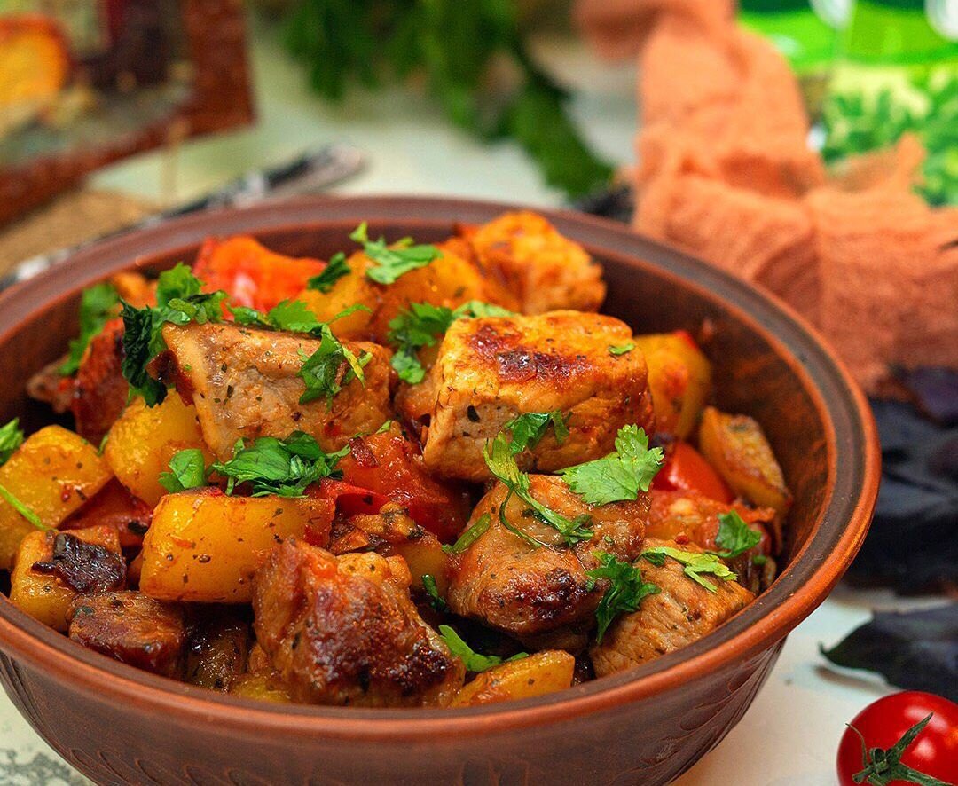 Сделайте для себя данный обеденный перерыв — приготовьте ароматную, и острую «Свинину со картофелем Оджахури».