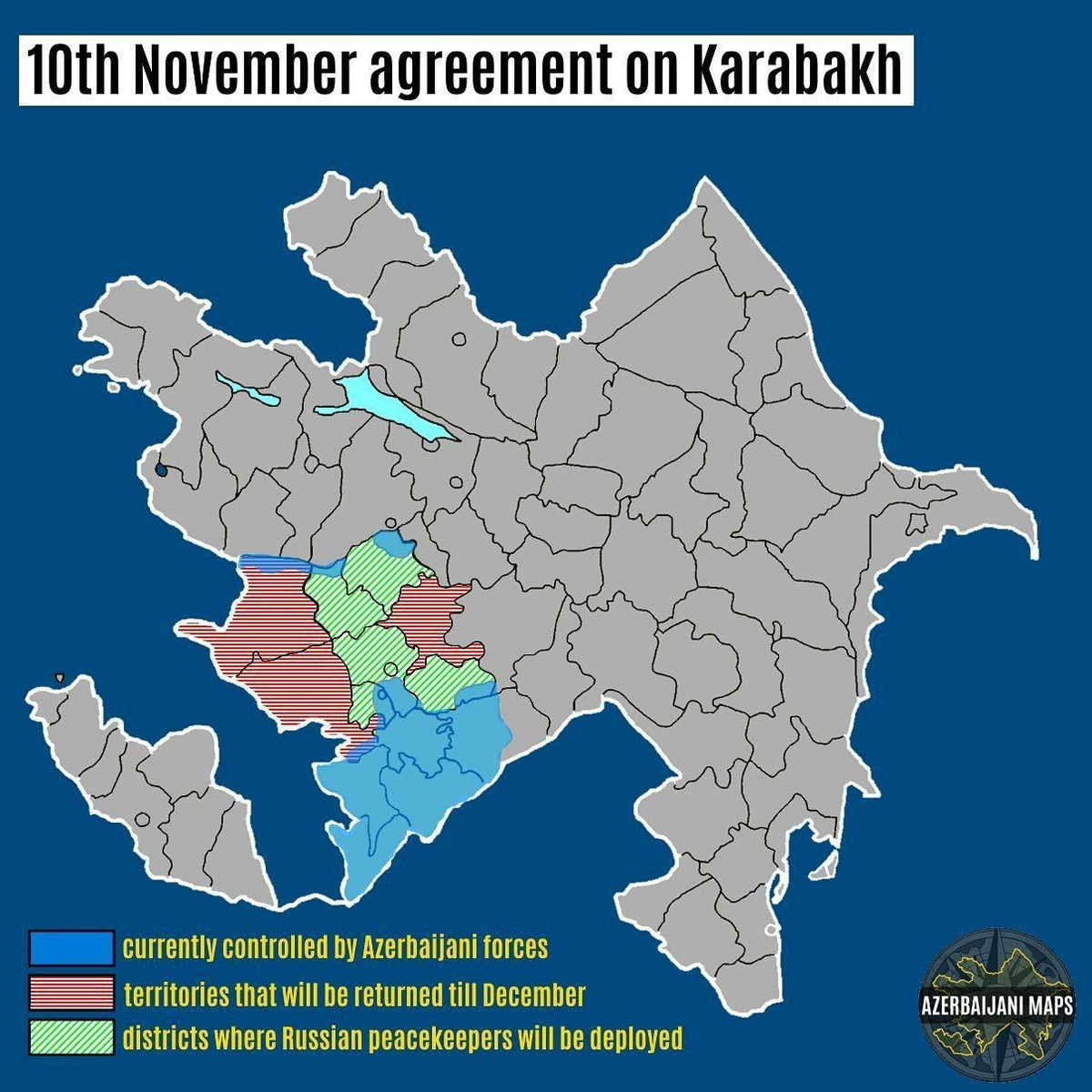- Армения (увы, российский союзник был разгромлен; по договору Армения вынуждена отдать даже те территории вокруг Карабаха, которые контролирует сейчас, и вывести войска из республики);