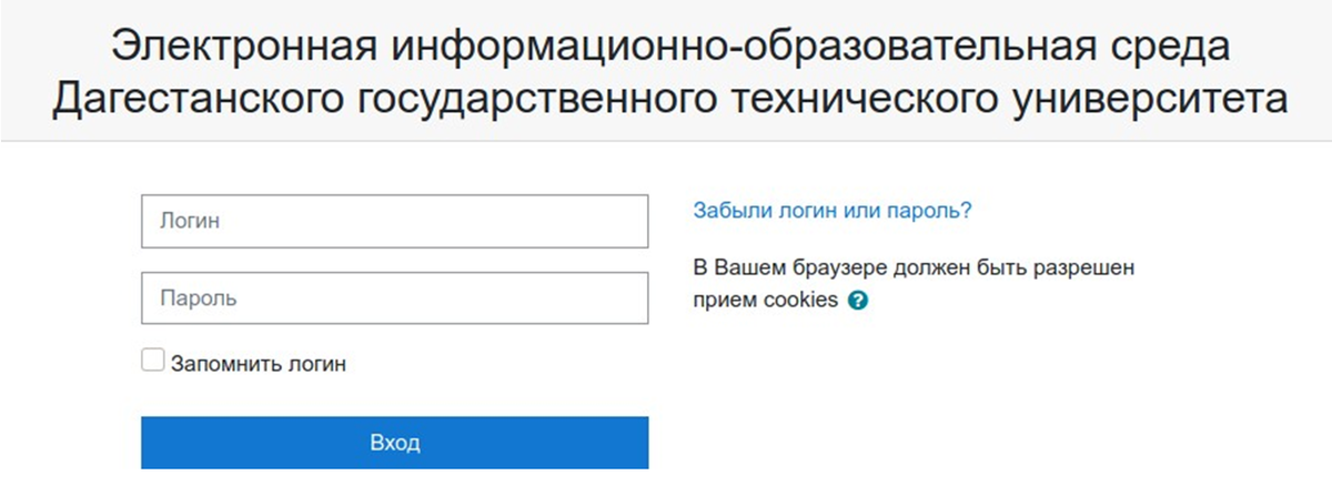 Для входа в систему необходимо ввести логин и пароль. Восстановление учетной информации осуществляется путем перехода по ссылке «Забыли логин или пароль?».