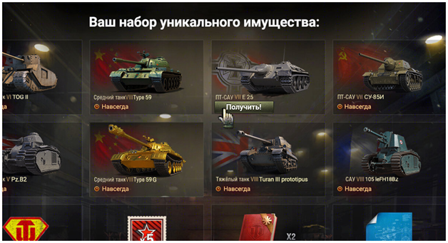 Но самое интересное, каждый месяц за тестирование им полагается награда, конечно же, золотом - от 8000 до 20000. У тебя копится определенное количество, которое ты можешь обменять на танки, и в их числе есть самые редкие: