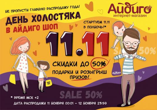 11 и 12 ноября, в нашем интернет-магазине пройдет традиционная распродажа в День холостяка! Подобная акция проходит в нашем интернет-магазине всего раз в год, но от этого и становится такой долгожданной! Распродажа на День холостяка проходит уже 5й год подряд и мы точно знаем, что все наши покупатели очень тепло о ней отзываются.