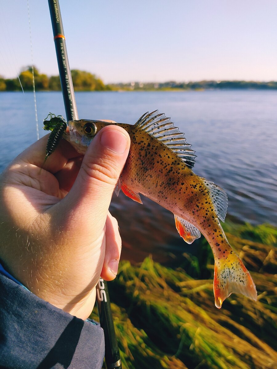 А сейчас одна только мелочь. Даже на волкер, знакомый в этот день ловил таких же окуней. Лично я обошел весь котлован с 7-40 до 10-40 и пошел домой отпустив всю рыбу назад в Волгу.