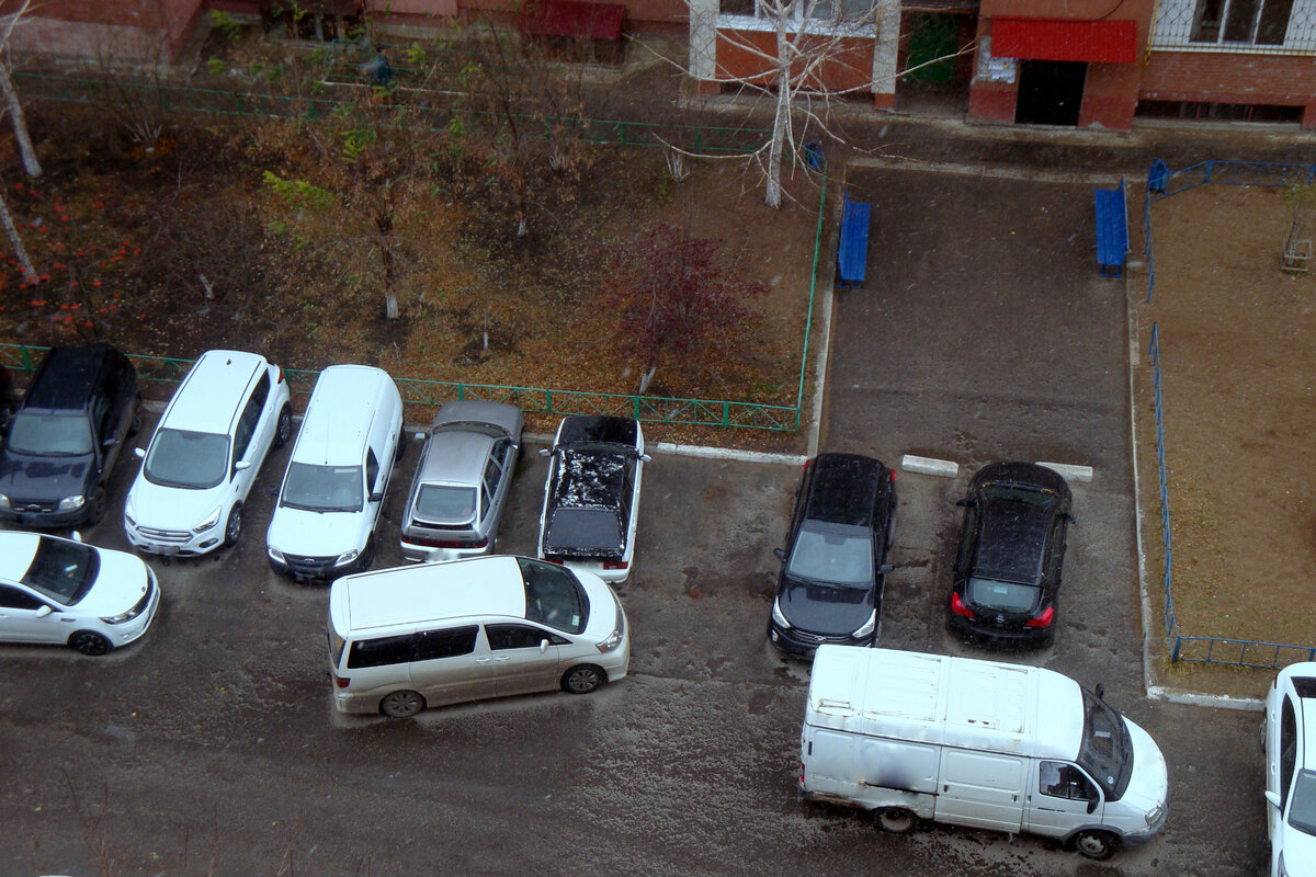 С утра необыкновенно активизировались синицы. Одновременно три сидели на рамах балконного остекления. Только я хотела их запечатлеть, как они, естественно, упорхнули. Но время от времени я всё равно поглядывала в окно. Вот благодаря синицам и увидала первый снег!