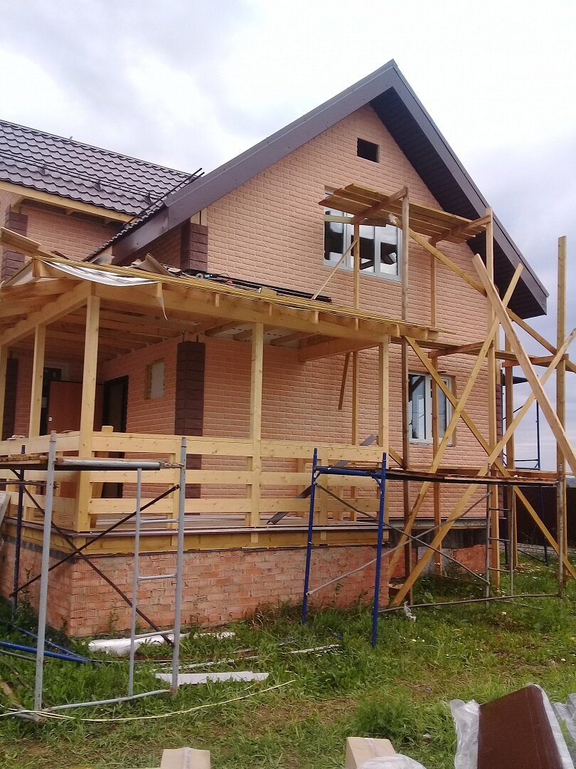 Индивидуальный жилой дом с 2-мя террасами и балконом в Зарайском районе, с. Чулки-Соколово. Построили за 2 месяца и удивили всех соседей выбором цвета фасада.
