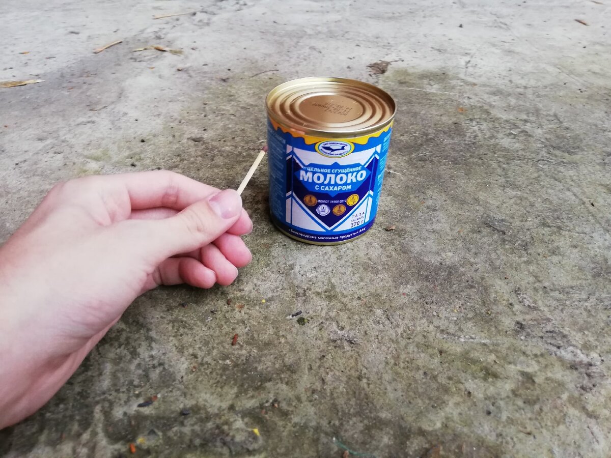 Друзья, всех приветствую у себя на канале! За последнюю неделю я видел очень много видео, в которых 2 человека спорят друг с другом, а сможет ли конкурсант открыть банку сгущёнки с помощью спички. Согласитесь, уже интригующе мол, а как можно спичкой открыть банку сгущёнки. Что самое интересное, они не показывали конечный результат - открытую банку, а просто спорили, как вы понимаете у конкурсанта не получалось открыть банку. Самое забавное видео, которое я видел: парень говорит своей девушке:"Если откроешь банку сгущёнки с помощью спички, подарю телефон", но к сожалению у неё не получилось открыть банку. Мне самому стало интересно, а можно ли это сделать в реальности. Для этого я пошёл в магазин, купил банку сгущёнки и коробок спичек. Моя первая мысль:"Раз у нас есть банка и спичка, то мы должны отталкиваться именно от того, что имеем." На банке есть бумага, можно обмотать ею спичку для большей прочности. От верхней части отступаю буквально 2-3 миллиметра, после полностью обматываю д