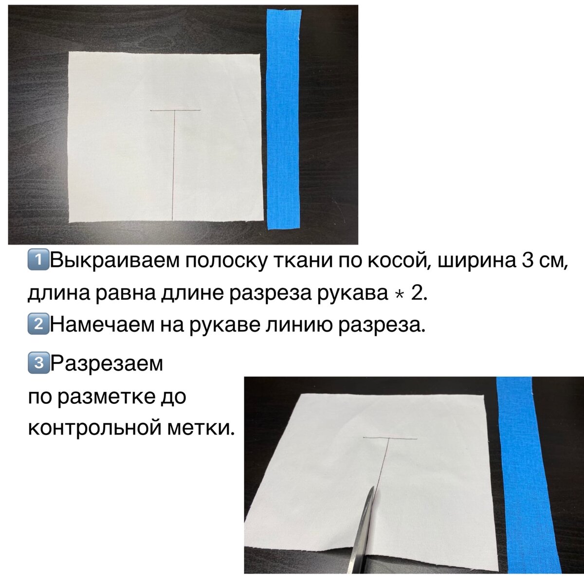 Разрез на рукаве готов , можно обрабатывать низ манжетой.