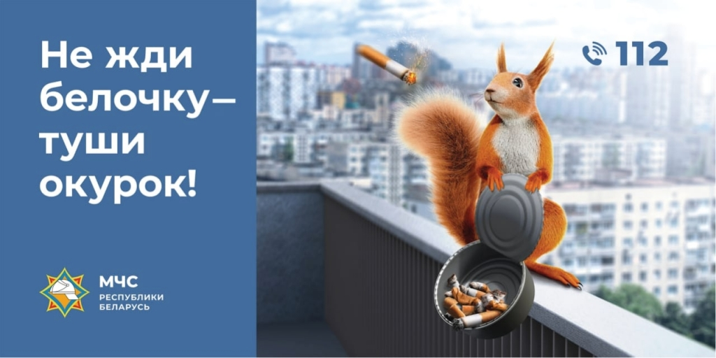 Для того чтобы привлечь внимание к проблеме пожаров из-за неосторожного обращения с огнем при курении и напомнить о безопасности, Республиканский центр пропаганды МЧС с 9 ноября запускает новую информационно-пропагандистскую кампанию – «Не жди белочку – туши окурок!». Ее целевая аудитория – люди, пренебрегающие правилами безопасности и считающие, что непотушенная сигарета – мелочь, которая не способна привести к трагедии.