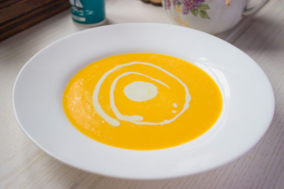 Вообще супы-пюре - это довольно простой и быстрый вариант разнообразить наш с вами рацион. Во-первых, они отличаются по консистенции и цвету от более привычных нам жидких первых блюд. Во-вторых, для их приготовления не требуется длительная варка бульона на мясной основе. В-третьих такие супы полезны, легко усваиваются и тд. Любители здорового питания сами знают все плюсы таких блюд: вкусно, полезно, жевать не надо )))) Отмечу, еще один немаловажный факт - для такого блюда не требуются особые навыки в кулинарии. Оно получится, даже у новичка. Единственное правило - не переусердствуйте с водой. Слишком густой суп можно разбавить, а вот слишком жидки загустить сложнее! Итак, сегодня будем готовить тыквенный суп-пюре со сливками и соусом на основе сыра с голубой плесенью. Рецептом нас одарил с экранов ТВ Илья Лазерсон.