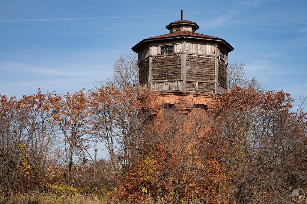 Чем дальше от начальства - тем лучше бывает состояние объекта. Не всегда, конечно, но бывает. Разъезд Николай-Дар (когда-то нормальная станция), здесь сохранность башни, конечно, не идеальная, но она есть. Такие башни - типовые сооружения рубежа XIX-XX веков, их много где строили, но мало где они сохранились в почти нетронутом виде. Типовое - не значит "серенькое" и "убогонькое", эти нехорошие ассоциации у нас появились во времена КПД, а с ними надо бороться. Как раз наоборот: в правильных условиях типовыми как правило становятся проекты, оптимальные с точки зрения строительства и эксплуатации, т.е. в некотором роде вершины технологий своего периода и знаки времени.