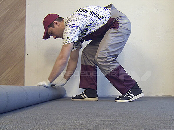 Чтобы Ксения могла свободно передвигаться по квартире, дизайнеры решили объединить в единое пространство кухню, гостиную и лоджию. Для этого в несущей стене прорубили проем, который затем усилили металлическими профилями. По периметру проложили темперную ленту, призванную уберечь стяжку от трещин. Для пола выбрали прочное итальянское покрытие из винила. За счет переплетения синих и голубых нитей полотно кажется объемным, присутствует «эффект ковра». Укладку покрытия произвели с помощью клея homakoll 164 Prof для гибких коммерческих ПВХ-покрытий. Состав подходит для большинства оснований, и прекрасно удерживает загибы рулонных материалов. Со своей задачей homakoll 164 Prof отлично справился: покрытие легло ровно, без изъянов и погрешностей.