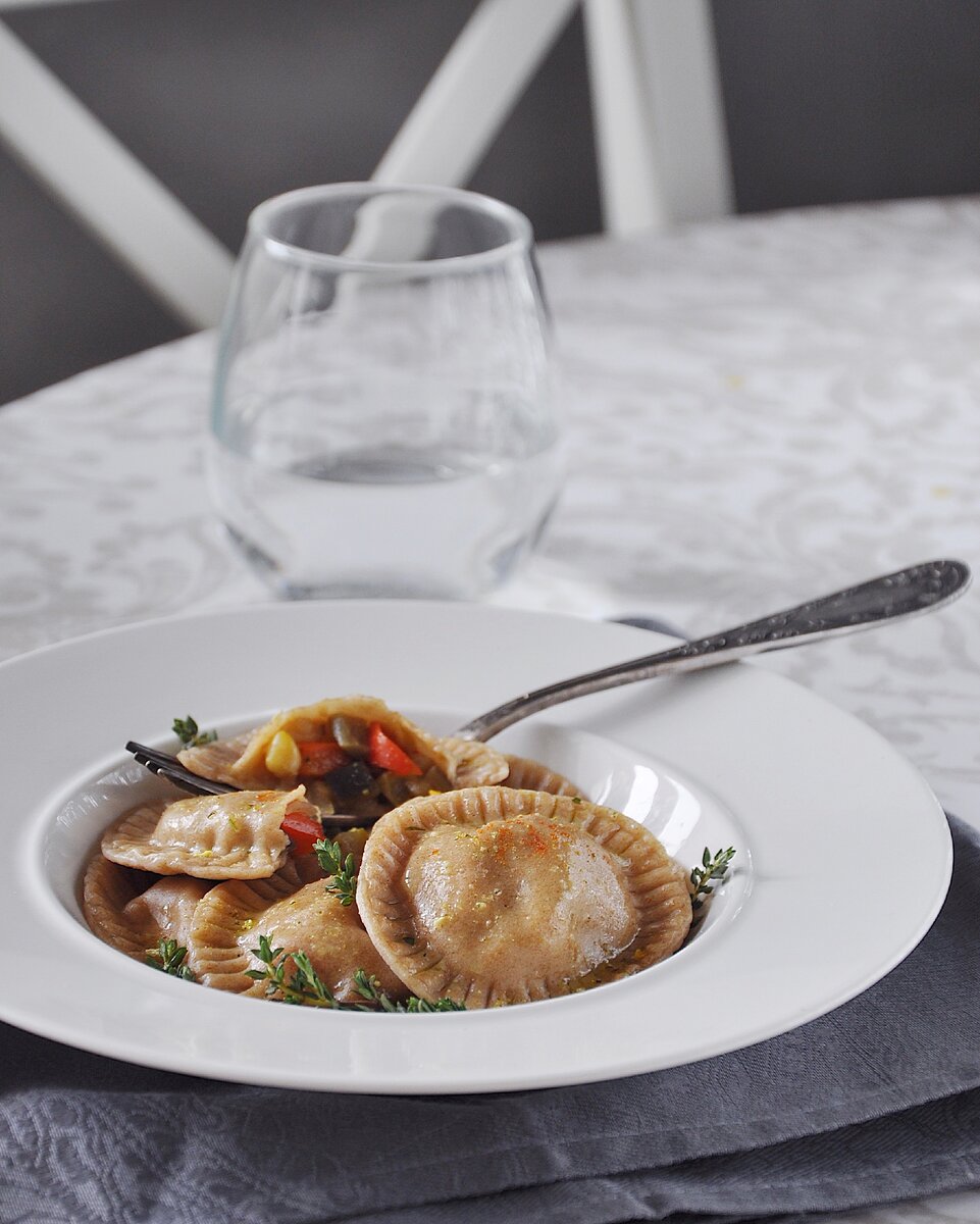 Рецепт равиоли из цельнозерновой муки с овощами и тимьяном