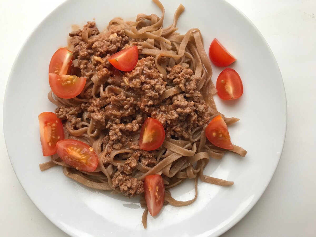 К отваренным макаронам добавляем мясную пасту и наслаждаемся!