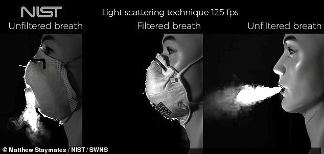 Кадры показали, что маски без клапанов успешно отфильтровывают большую часть капель из выдыхаемого воздуха — тем самым снижая риск передачи COVID-19.