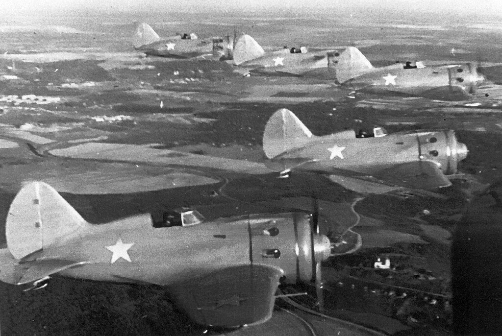 Летали советские пилоты в ту пору на И-16.