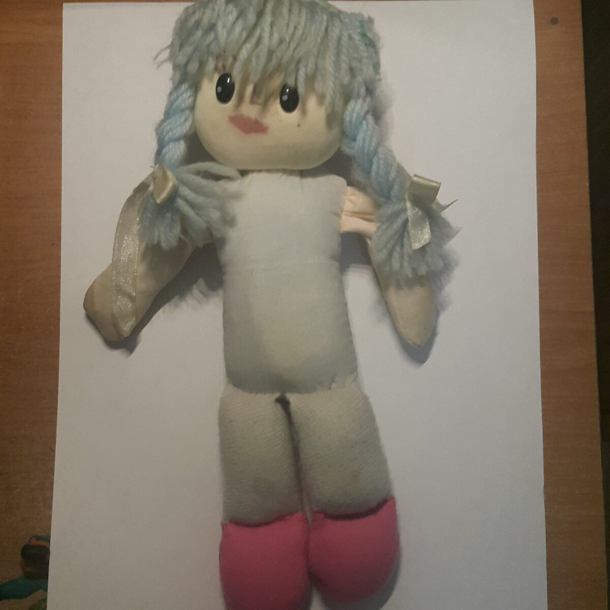 Ну вот собственно куколка, вернее то что осталось от нее и это от большой любви ребенка к ней))) Племянница с ней везде, не выпускала из рук. Ела, спала, играла и залюбила в конец.