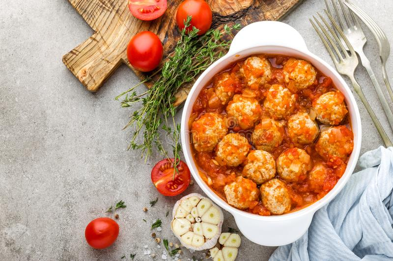 Из фарша влажной рукой катаем фрикадельки и аккуратно кладём их в кипящий на медленном огне соус. Лучше делать это мокрой столовой ложкой, чтобы не летели брызги. Когда вся сковородка заполнится, тушим фрикадельки в соусе, поливая их томатом минуток семь.