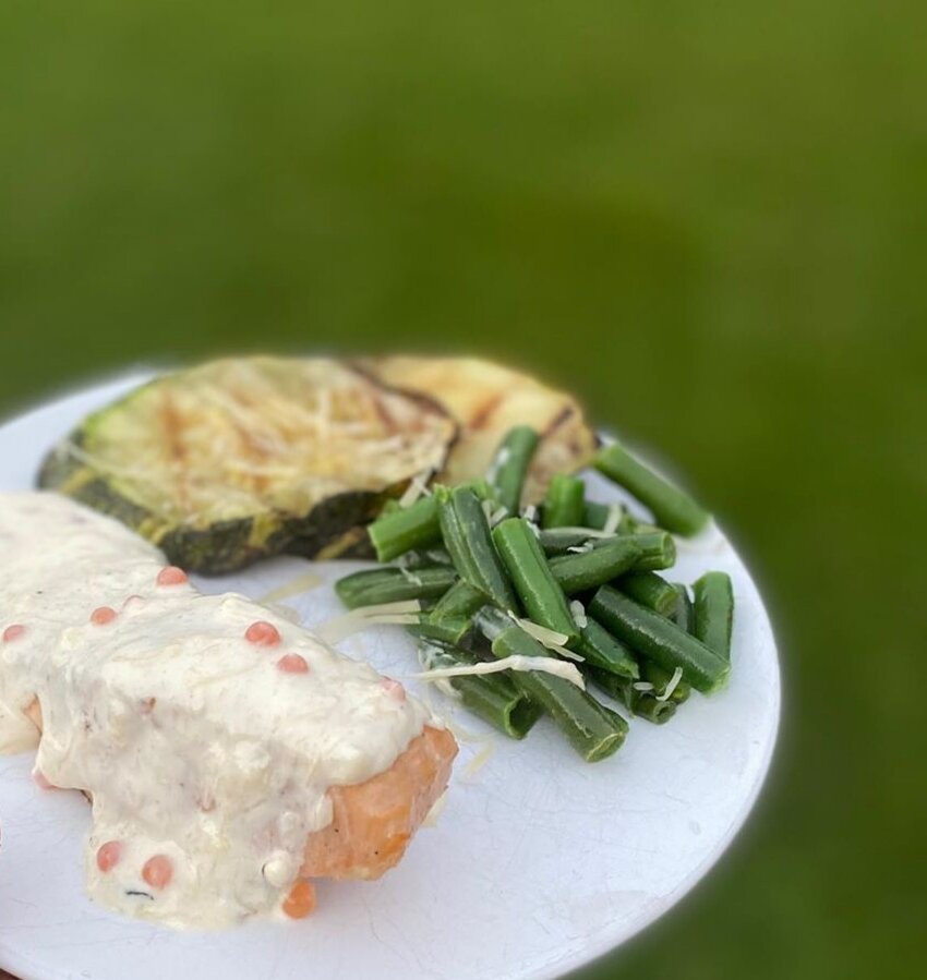 Филе форели под сливочным соусом с красной икрой