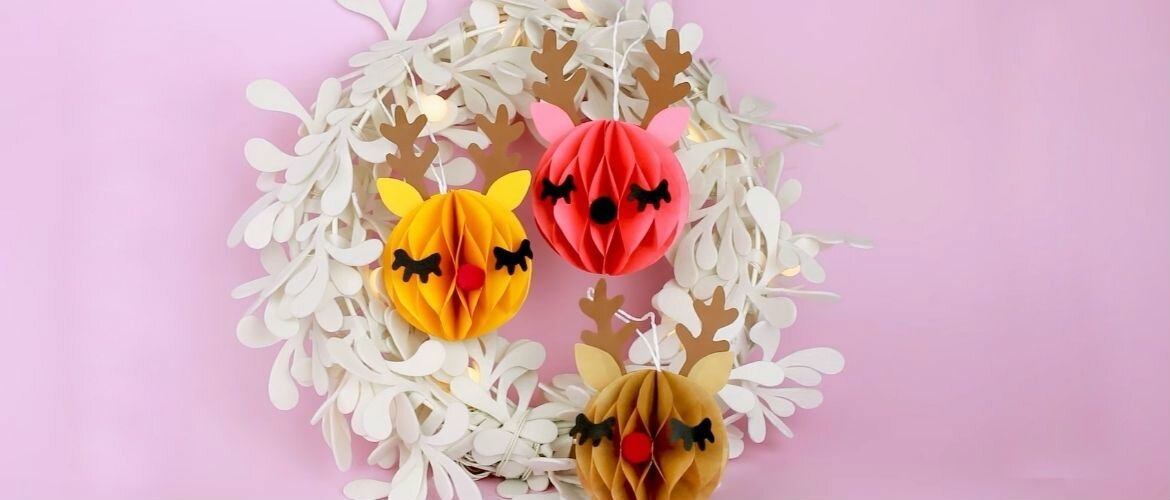Скоро придет время новогоднего декора. Мы будем украшать не только елочку, но и окна, двери, камин, комнату, подарки. Давайте уже сейчас возьмем на вооружения самые интересные идеи и воплотим их в жизнь. Мы в Joy-pup собрали мастер-классы, как сделать поделки из бумаги на Новый год 2021 и предлагаем поупражняться в хендмейде. Шарик на елку из бумаги — милый олененок Мордочка милого олененка может украсить вашу новогоднюю елочку, окна, комнату. Также можно сделать красивую гирлянду с этой поделкой из бумаги. Бумагу берите цветную, двустороннюю. Вам потребуется: Пошаговая схема 1. Возьмите лист бумаги, поставьте стакан верхом вниз, обведите 2 кружочка с одного края. Сложите гармошкой в 3 слоя, вырезаем все сразу. У вас получится 6 штук. 2. Перегните кружочки вдвое, затем вчетверо, разверните. Сложите половинки нижней стороны к центру с одной, а затем со второй стороны. 3. Разверните заготовку, нанесите клей на точку, отмеченную белым цветом на фото. Сложите кружок вдвое, сожмите пальцами