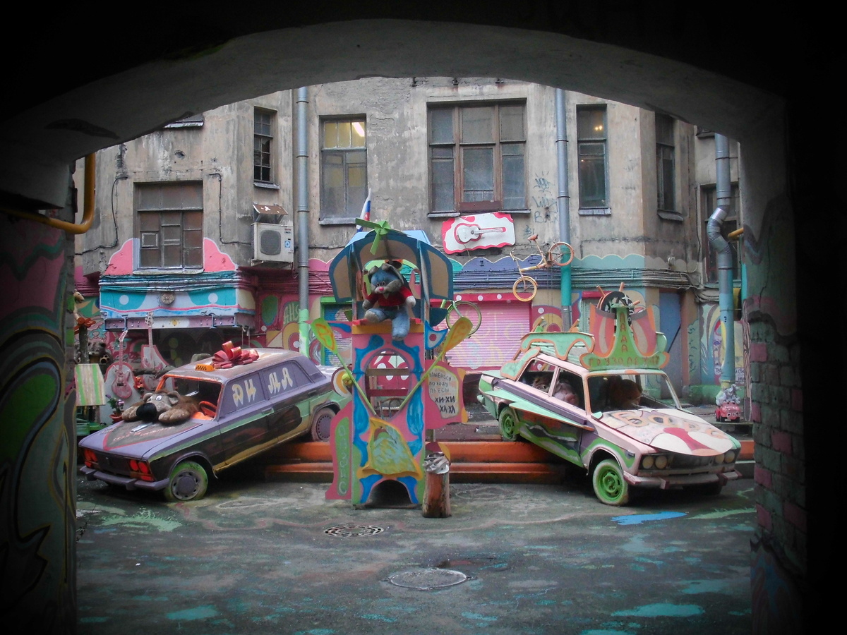 В 2011 году, в полуподвальном помещении на улице Полозова, 6, поселился бездомный бард и художник Нельсон Искандерян. За два года до этого он приехал в Санкт-Петербург. Снимал комнату, жил в автомобиле, пока не нашёл пустующую дворницкую. Приведя её в порядок и украсив, Нельсон перенёс свой творческий запал на территорию всего двора. Унылое пространство преобразилось - его заполонили композиции, созданные из подручного материала, старых игрушек и даже автомобилей. Стены домов расцвели причудливыми узорами, вязью имен и афоризмами.