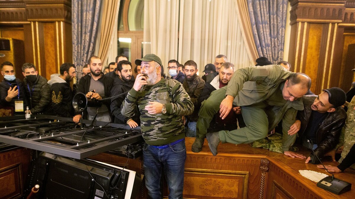 По итогам мирного соглашения , подписанного сторонами Карабахского конфликта случилось бурление народных масс. Народ ворвался в здание парламента Армении , покрушил мебель, стулья, телевизоры , набил морды кое-кому....