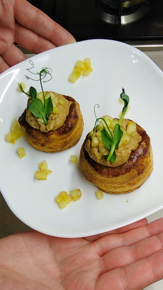 Всем привет, вы на канале Пластилиновый повар! Есть у меня один интересный рецептик простой и всеми известной закуски. Это конечно же паштет из куриной печенки. Вариантов его приготовления огромное кол-во, я вам предлагаю свой. Думаю он вам понравится. Для тех кто не хочет читать, может посмотреть видео. Там кстати не только паштет. Продукты: Для Яблок: Приготовление: Первым делом ставим духовку разогреваться до 180С. Из слоеного теста вырезаем кружочки. На порцию идет 2 кружочка. Из одного кружка нужно будет врезать серцевину. Лучше всего делать маленькие кружочки, буквально на один уксус. У меня получились очень большие. На противень с пергаментом Кладем наши кружочки, смазываем их льезоном и сверху кладем колечки, также смазываем льезоном. Оставляем на расстойку на 10-15 мин. Выпекаем при температуре 180С до румянца. Льезон- слегка взбитое яйцо, с водой, молоком, сливками или просто желтки. Печень куриную нужно хорошенько промыть. У печенки удаляем все лишнее (прожилки, пленочки) и