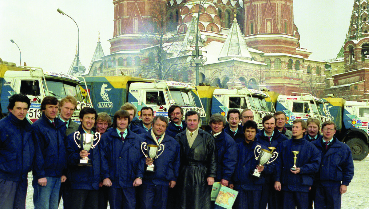 Впервые в истории «Дакар» покорился россиянам, впервые в 1991 году мир назвал в числе триумфаторов гонки отечественные грузовики марки КАМАЗ. Команда фотографируется на Красной площади в Москве на фоне своих гоночных «болидов». Вот они, герои. Призёры – серебряные, но кто б усомнился? – бесспорно, первые. Все. Экипажи вновь выступали на серийных трёхосных КАМАЗах – совсем не гоночных моделях. «Мы были счастливы общей победой. И кубки были общими, и награждали одинаково, как первых, всех членов команды», – вспоминает об этом времени легендарный гонщик, ЗМС России, двукратный победитель «Дакара», обладатель Кубка мира, ныне замдиректора по развитию ПАО «КАМАЗ», почётный гражданин г. Набережные Челны Фирдаус Кабиров.