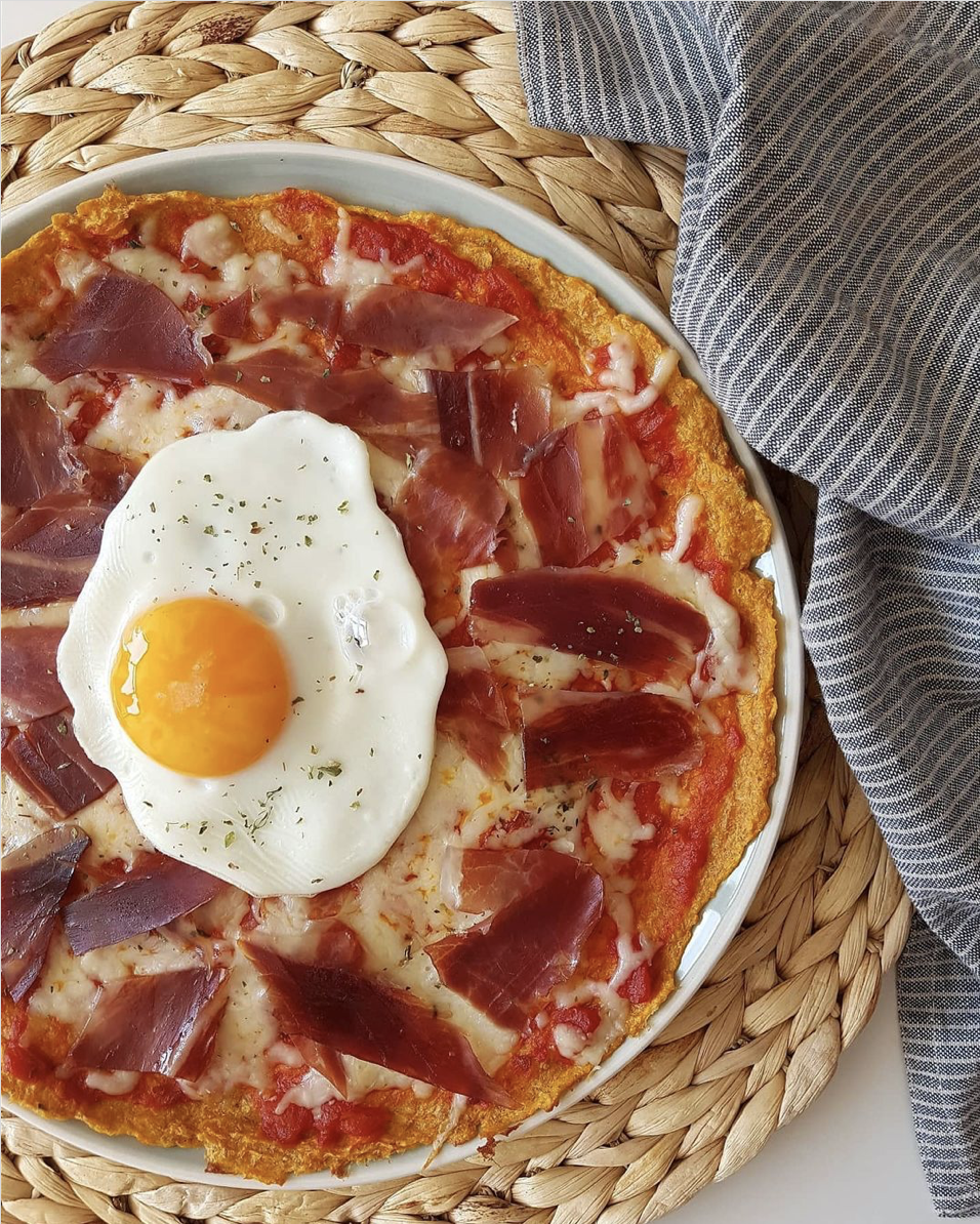 🔘В это время делаем яичницу "Глазунья" на гриле (без масла) и нарезаем ветчину, если нет хамона.